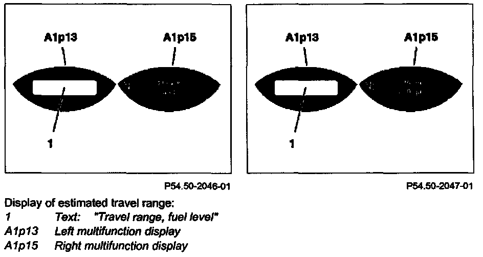 - The range is updated more frequently when the fuel level in the tank is in the reserve range. The reserve capacity employed for these calculations may vary slightly from the reserve quantity in the fuel level and reserve display (A1p2) in the instrument cluster (A1).