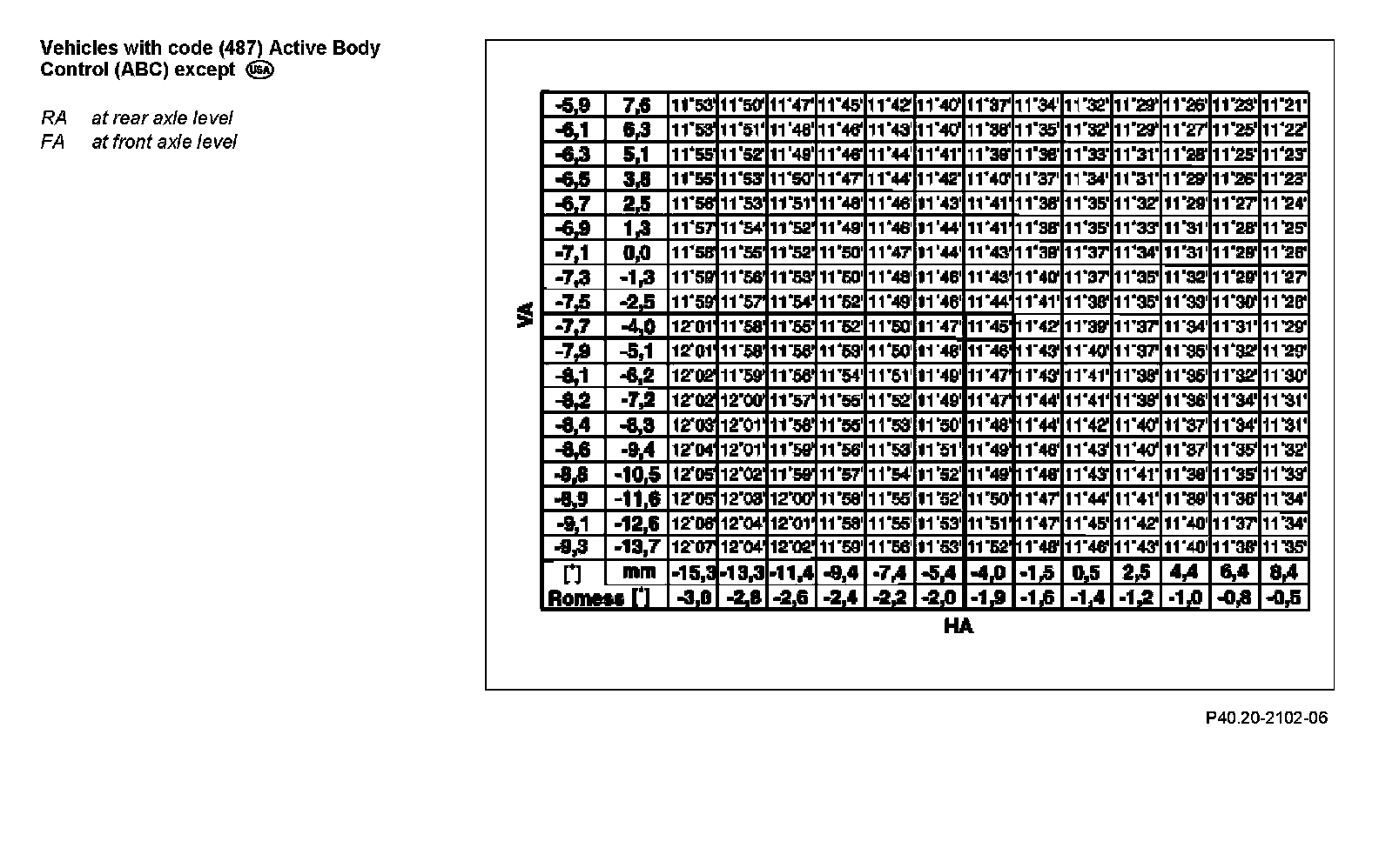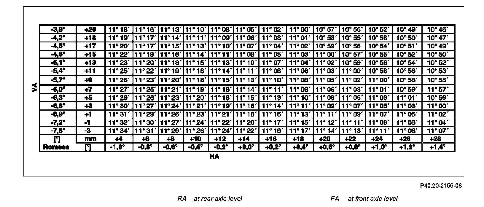 Rear axle level value (RA): +0.2 degrees