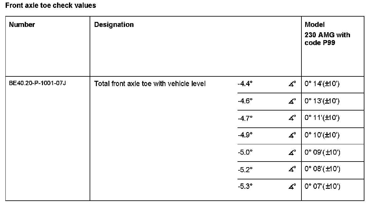 BE40.20-P-1001-07J Front Axle Toe Check Values