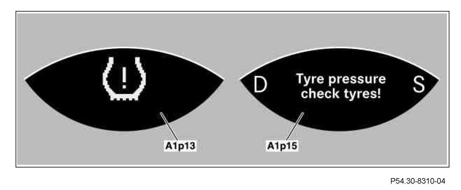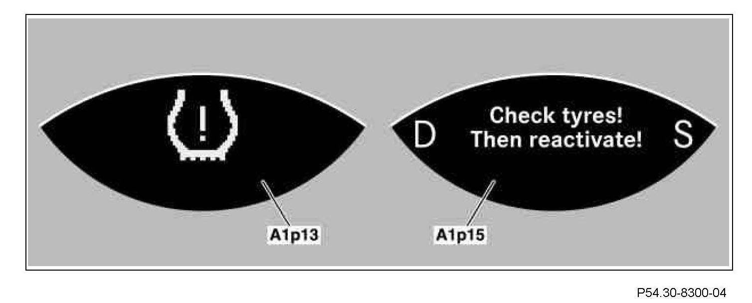 This message is displayed in the left multifunction display (A1p13) and right multifunction display (A1p15) after a red warning message, when the tire pressure loss warning has not been reactivated after this.