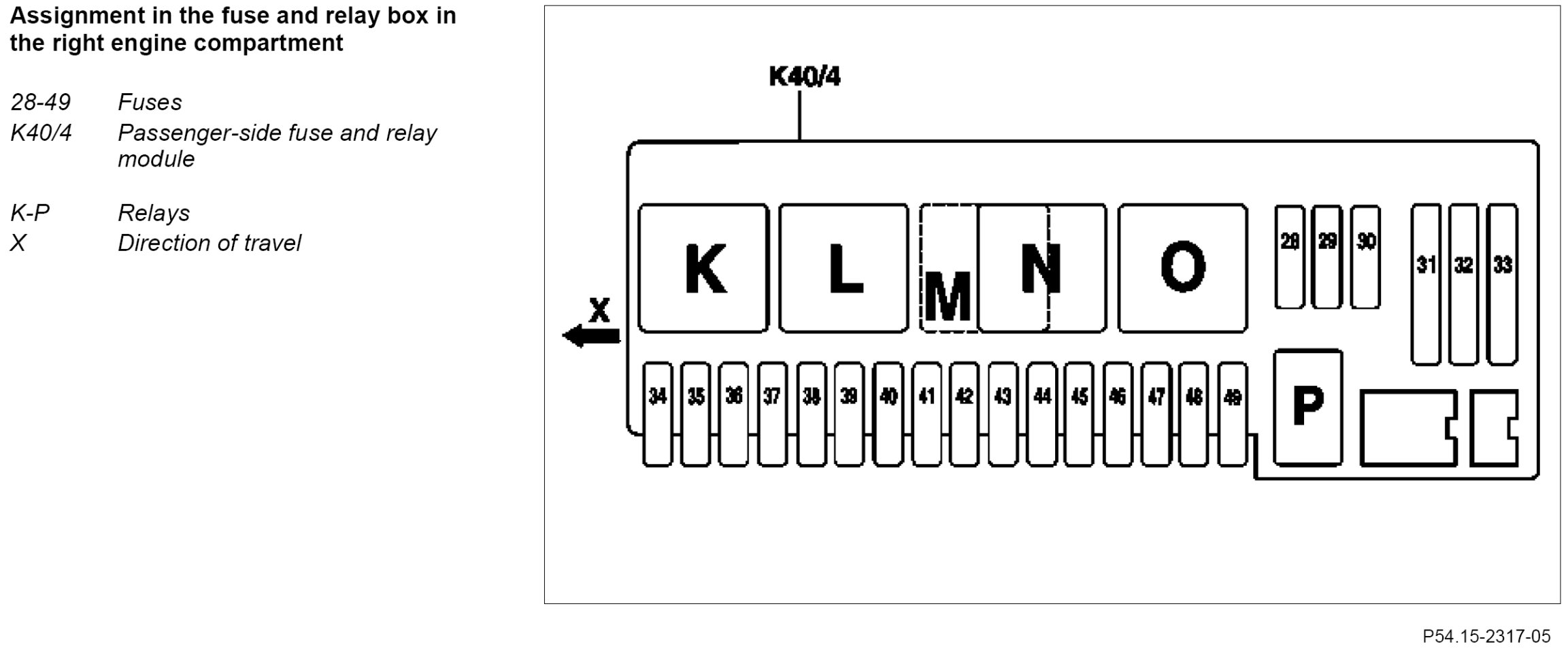 GF54.15-P-1256-02RB Fuse Assignment Of Fuse And Relay Box In Right Engine Compartment