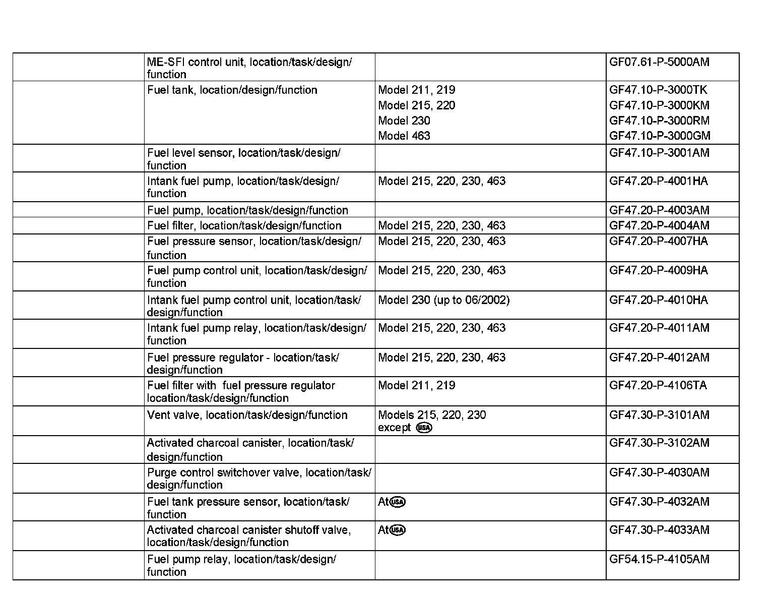 In case of model 230 up to 06/2002, the intank fuel pump is actuated via the intank fuel pump control unit (N118/1) from an engine speed of around 5000 rpm.