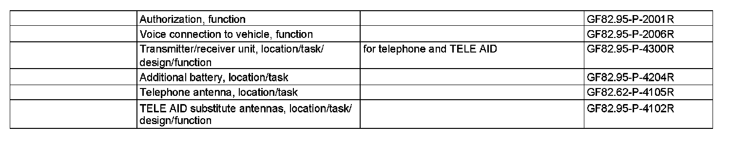 The radio link is established through the telephone system with the aid of the CTEL antenna (A2/22). If the CTEL antenna (A2/22) is no longer operational because of an accident, the CTEL and TELE AID transmitter/receiver, D2B (A35/17) switches over automatically to the TELE AID backup antenna (A2/50). If the power supply is interrupted (for example battery interruption) the D2B telephone and TELE AID transmitter/receiver (A35/17) switches automatically over to the additional battery (G1/1).
