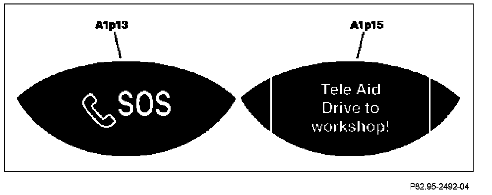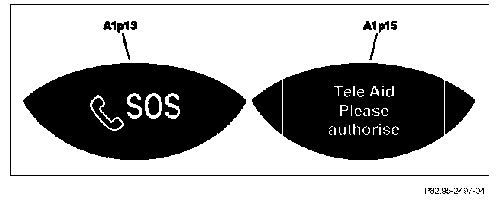 A TELE AID system error is present when the state display for the SOS pushbutton switch S93/3 does not go out 5 seconds after being switched on or when it comes on at a later time. In the event of a fault, an error messages is displayed on the left multifunction display (A1p13) and on right multifunction display (A1p15) in the instrument cluster (A1).