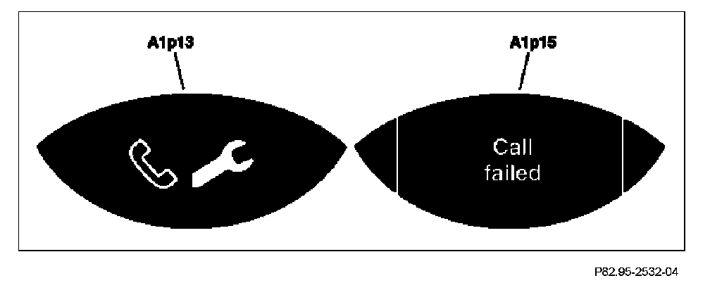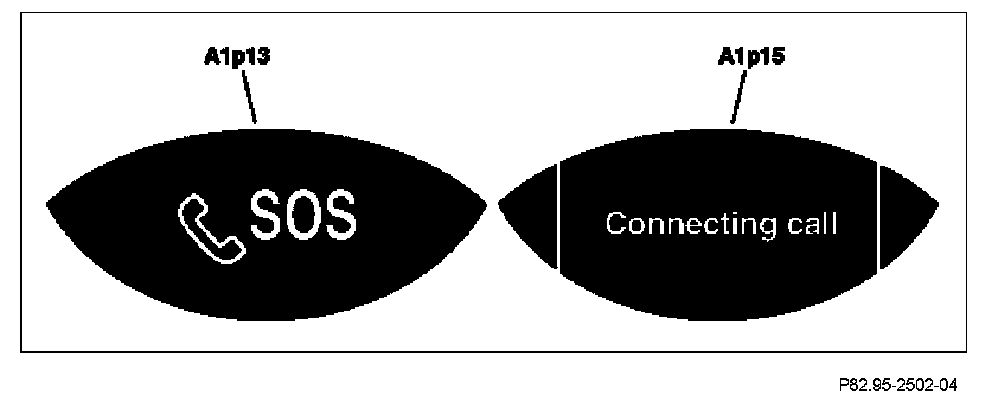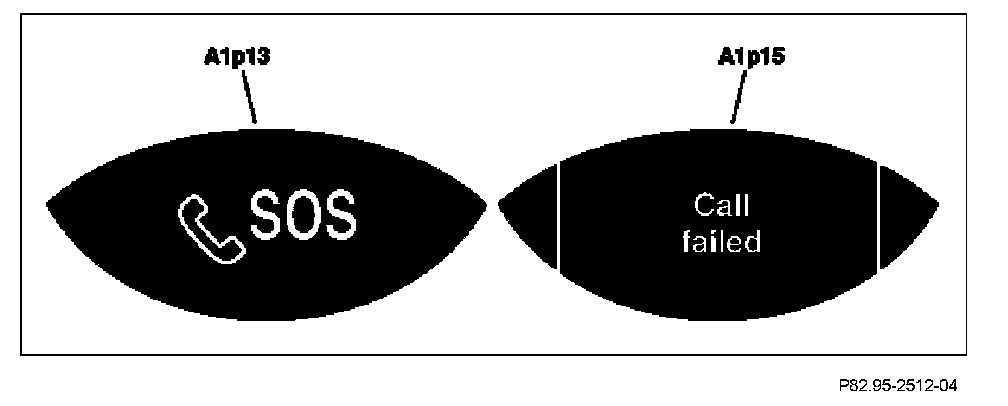 If a TELE AID emergency call could not be placed, the state display for the SOS pushbutton switch (S93/3) lights up continuously. In addition, an error message appears on the left multifunction display (A1p13) and on the right multifunction display (A1p15) in the instrument cluster (A1). If a voice connection is established, the state display for the SOS pushbutton switch (S93/3) returns to the same state as before the TELE AID emergency call was triggered. In addition, a status message appears on the left multifunction display (A1p13) and on the right multifunction display (A1p15) in the instrument cluster (A1).