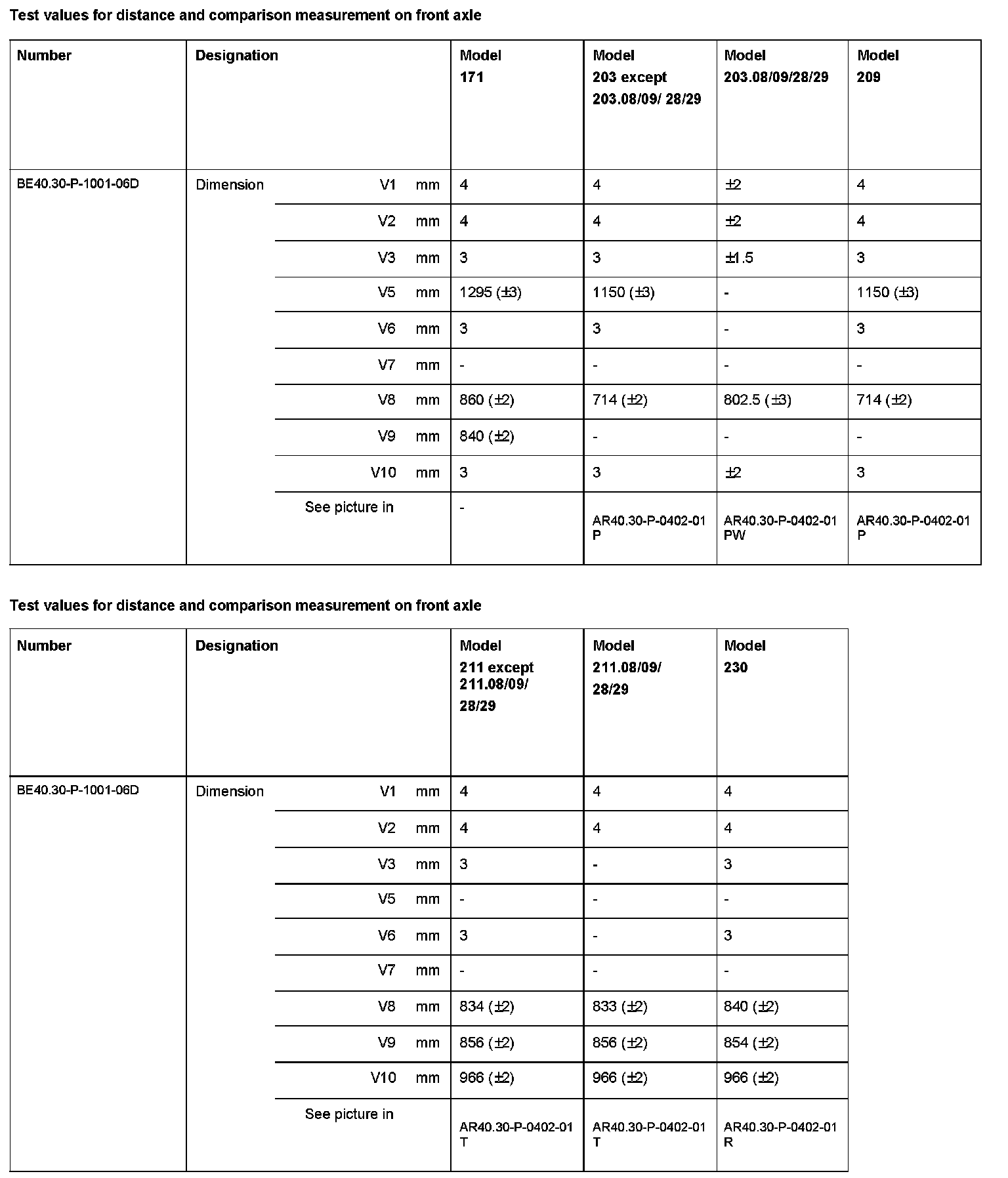 BE40.30-P-1000-06D Test values for distance and comparison measurement on front axle