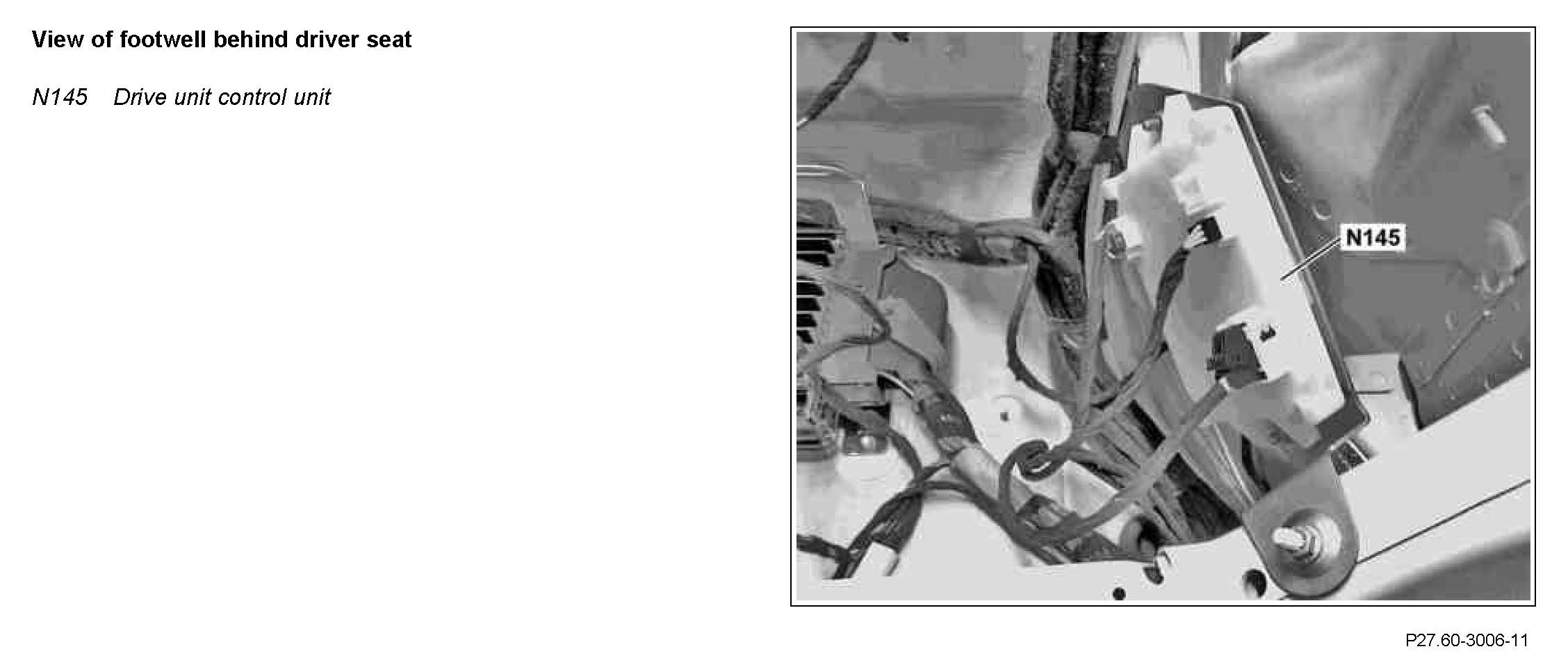 The drive unit control unit is located in the footwell behind the driver seat.