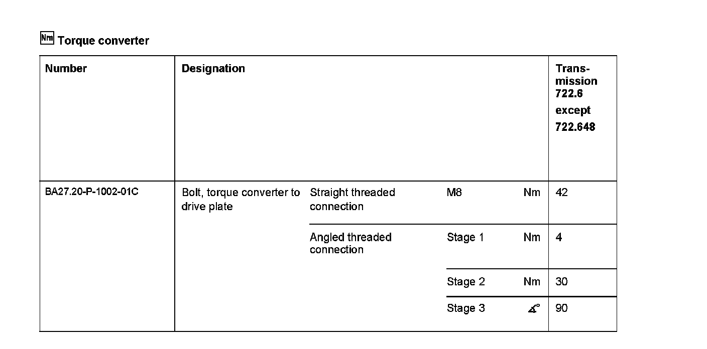 Torque converter test values: