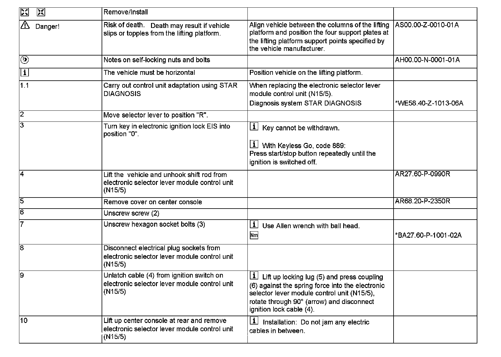 AR27.60-P-0901RA Remove/Install Electronic Selector Lever Module (ESM)