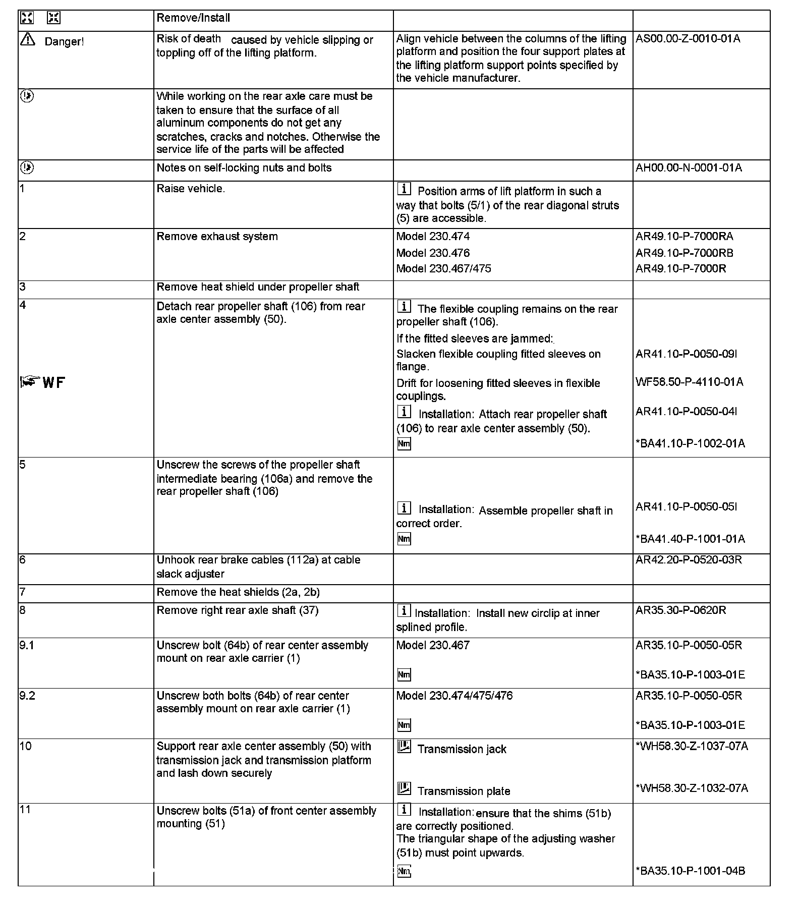 AR35.31-P-0520R Remove/Install Rear Axle Center Assembly