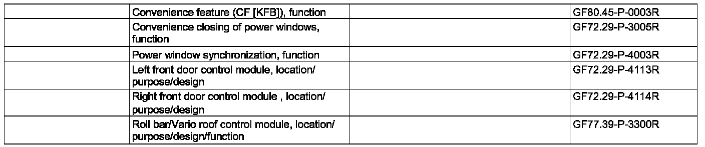 GF72.29-P-3004R Convenience Opening of Power Windows, Function