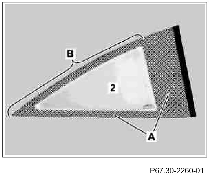 5. Coat bonding area (B) on rear side window (2) with primer included in the repair kit (width approx. 3 to 4 mm)