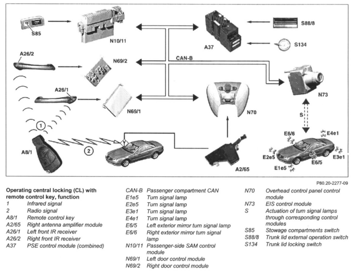 Operating the remote control key (A8/1) produces the following vehicle states:
