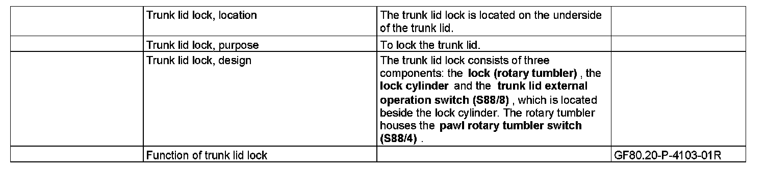 GF80.20-P-4103R Trunk Lid Lock, Location/Purpose/Design/Function