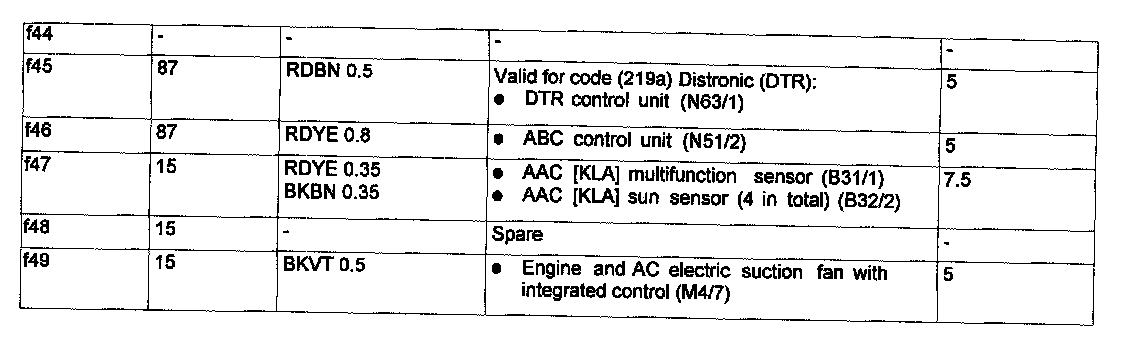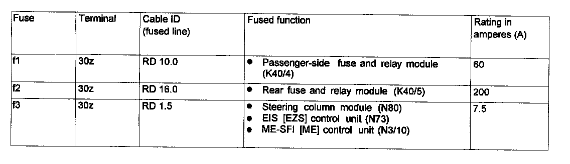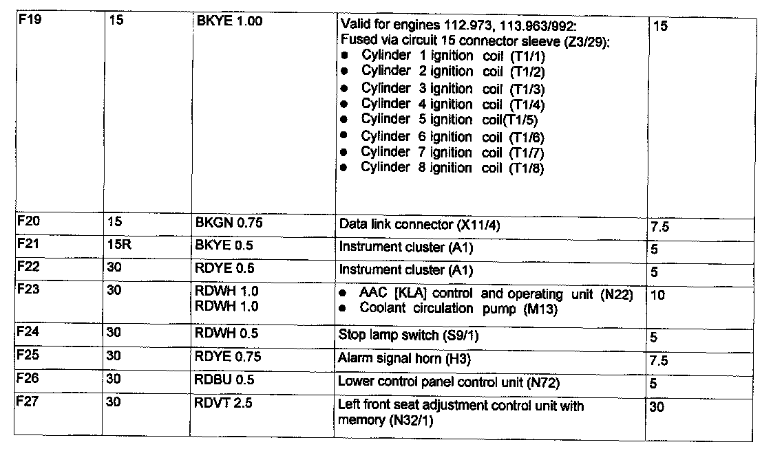 Assignment in the Fuse and Relay Box in the Left Engine Compantment