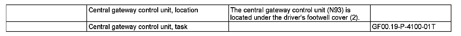 GF00.19-P-4100R Central Gateway Control Unit Location/Task