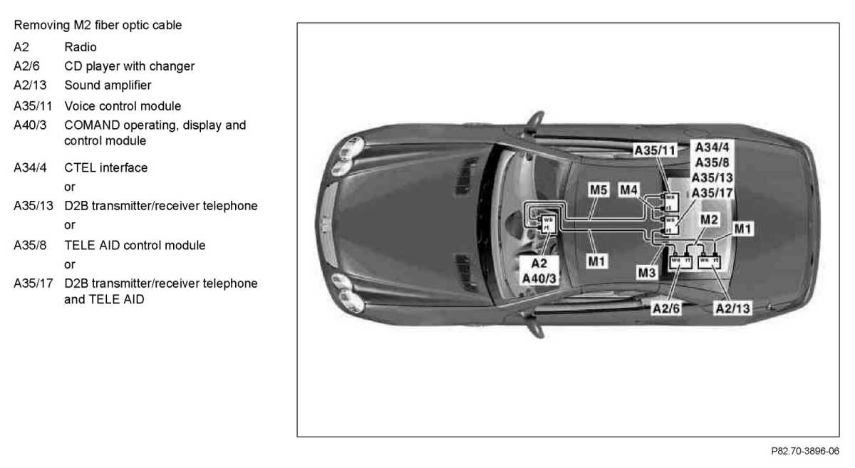 - Fiber optic cable between control modules below luggage box in left rear