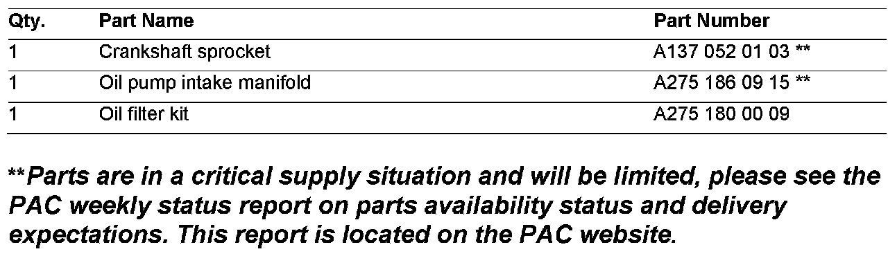 a. Updated crankshaft sprocket, part no. A137 052 01 03
