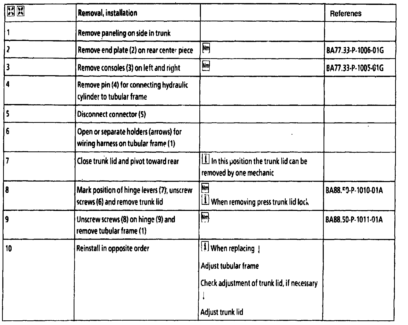 AR88.50-P-5100G Remove/Install Tubular Frame For Trunk Lid