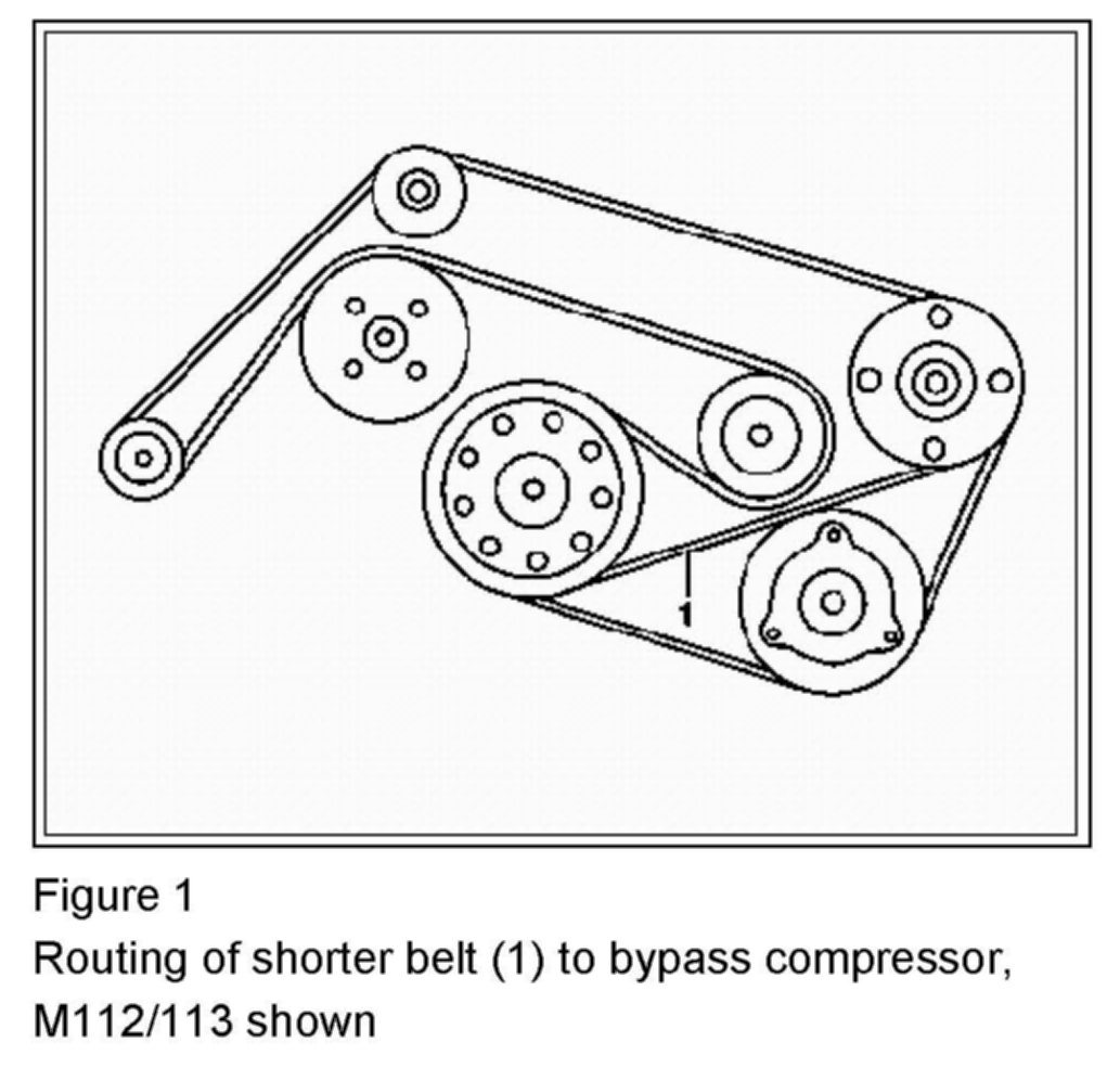 The belts can be sourced locally or by MB part number. The belts must be purchased to diagnose AC compressor pulley noise and are not to be submitted on a warranty claim.
