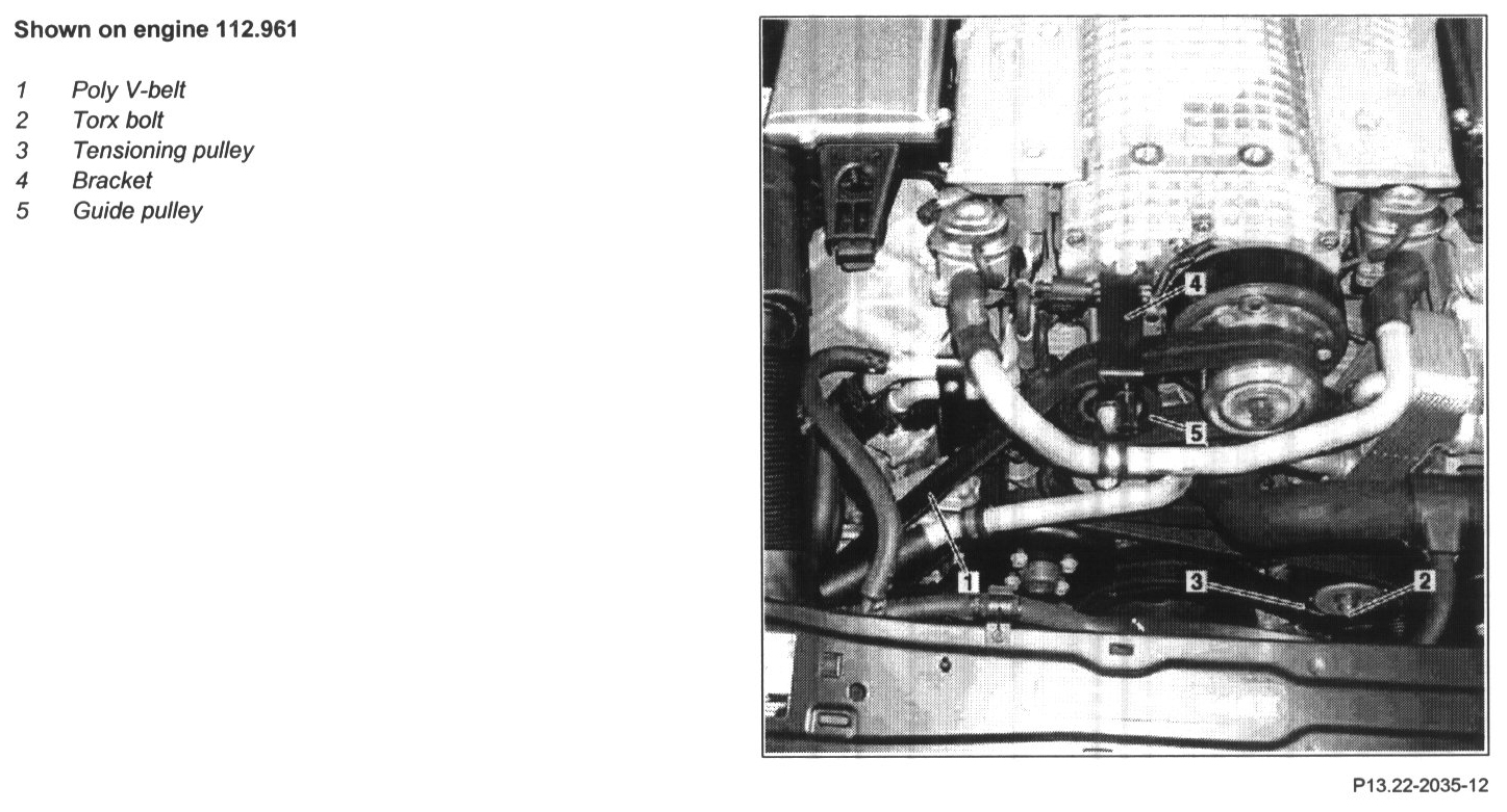 NOTE: Begin at tensioning pulley in the numerical order of the relevant running diagram : Running diagram of poly V-belt