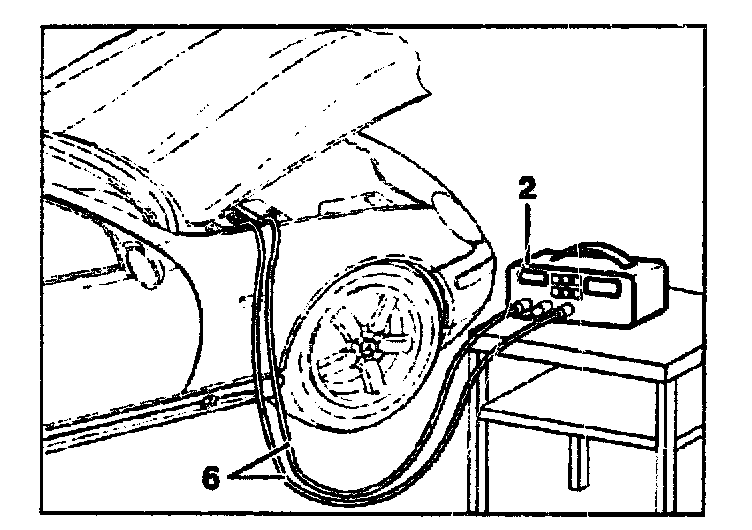 - Connect negative test cable (-) to negative pole (3) on battery.