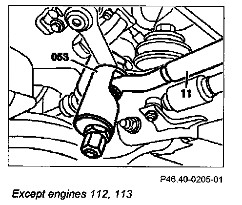 5 Press off drag link (11) on pitman arm and steering idler arm using thrust piece (046) and puller (044)