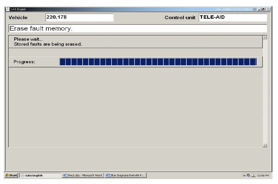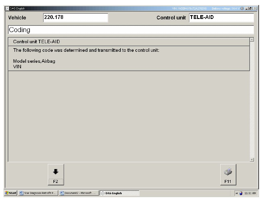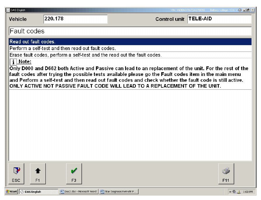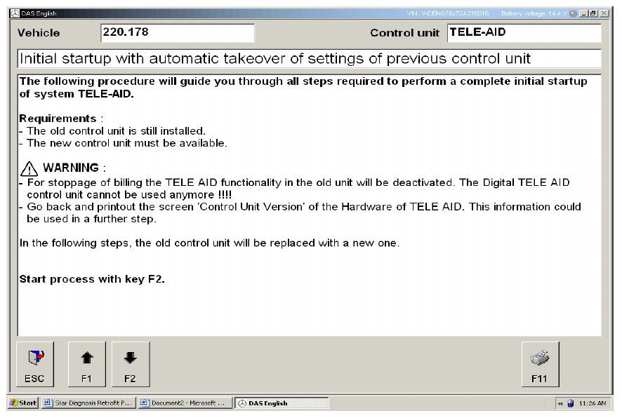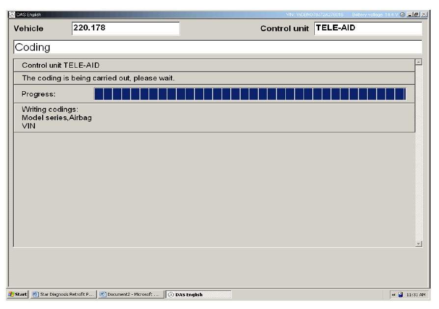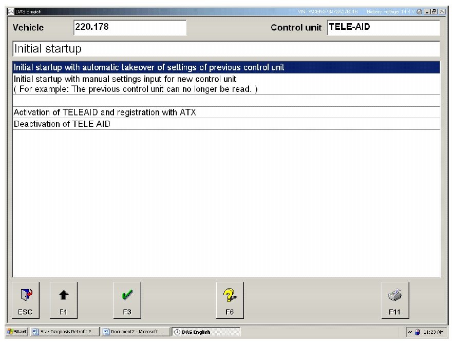 Connect the Star Diagnosis tool and follow the path Cars->Class Selection ->Model Series Selection-> Engine Selection ->Main Groups->Control Units->Information and Communication ->Tele Aid-> Initial Start Up.