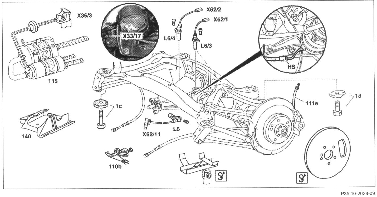 L6/3[KLA],L6/4 Rear wheelspeed sensors, left and right sides, removal and installation