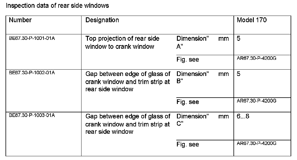 Inspection Data Of Rear Side Windows: