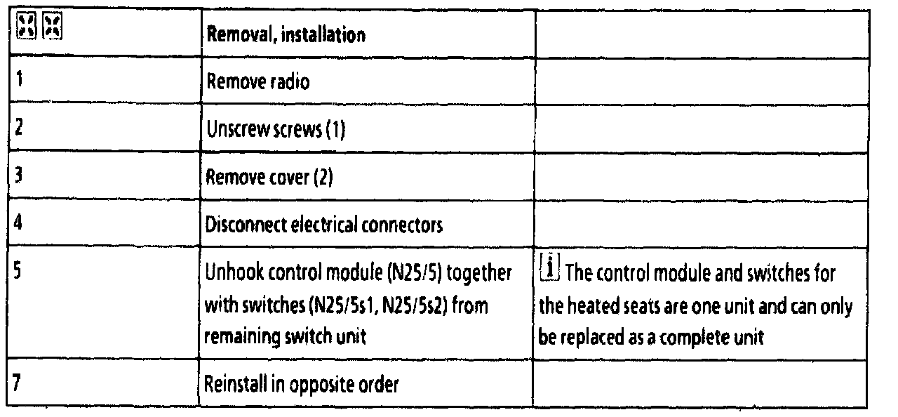 AR91.30-P-0001G Remove/Install Control Module and Switches For Left and Right Front Heated Seats