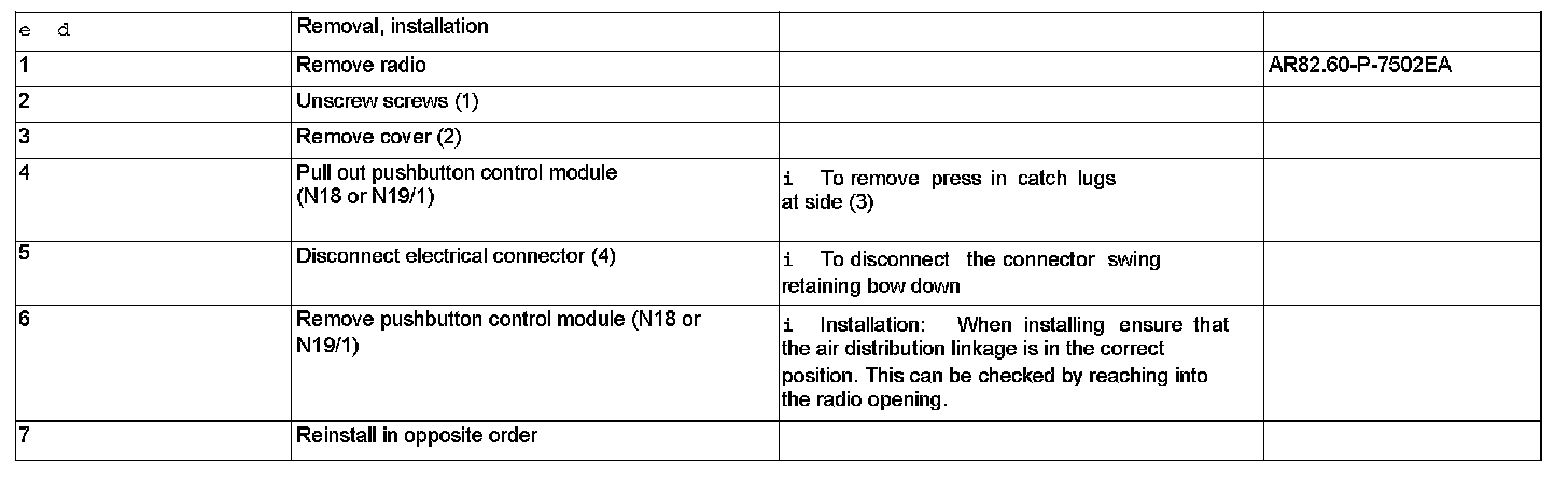 AR83.25-P-1120G Removing and Installing Pushbutton Control Module For Automatic Heater or Air Conditioning (Tempmatic)
