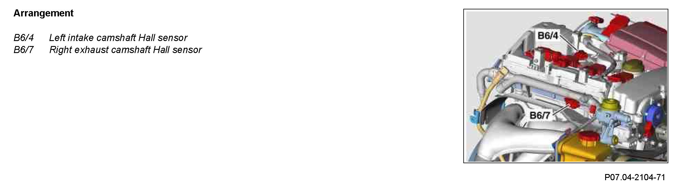 The Hall sensor on the exhaust camshaft is located at the right front on the cylinder head.