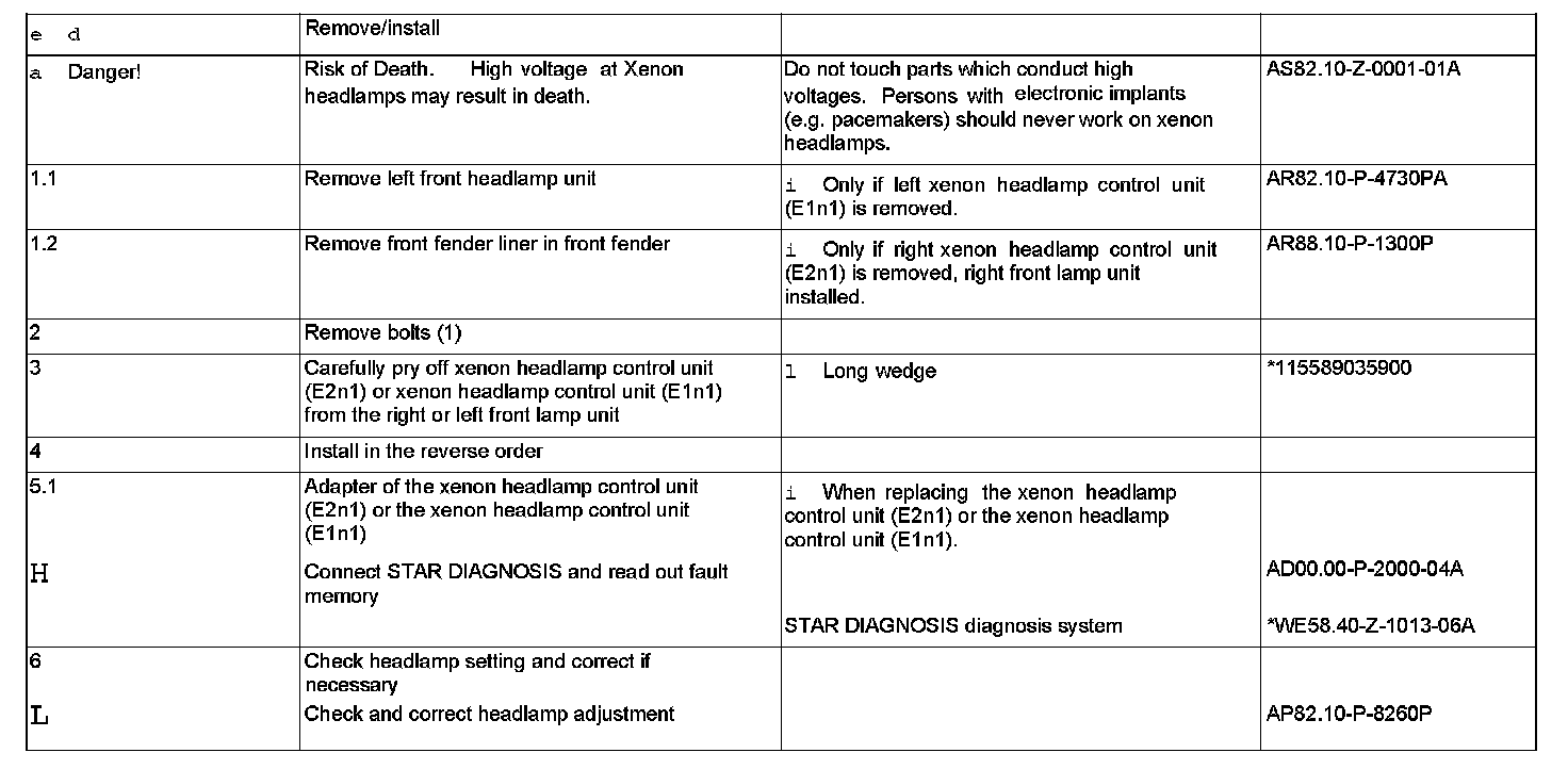 AR82.10-P-4632P Remove/install Xenon Headlamp Control Unit