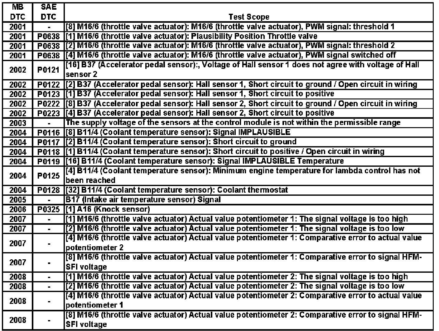 A L L Diagnostic Trouble Codes ( DTC )