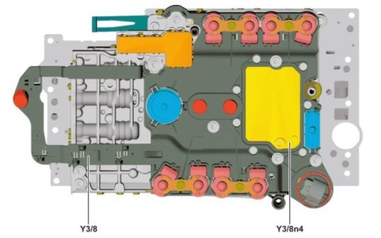 - Component Y3/8n4 (Fully integrated transmission control (VGS) control unit) is defective.