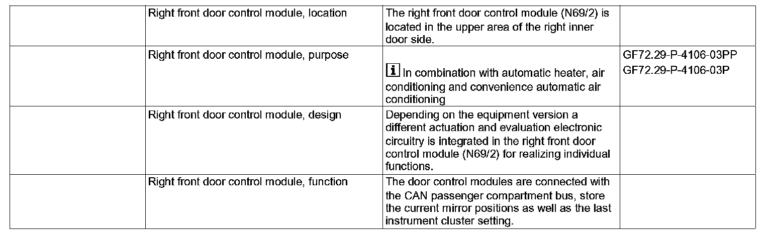 GF72.29-P-4106PP Right Front Door Control Module, Location/Purpose/Design/Function