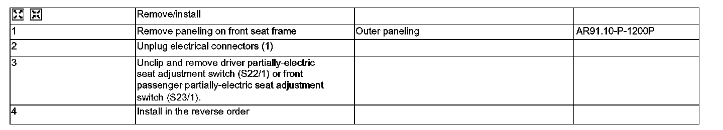AR91.29-P-0003P Remove/Install Seat Adjustment Switch Unit On Front Seat