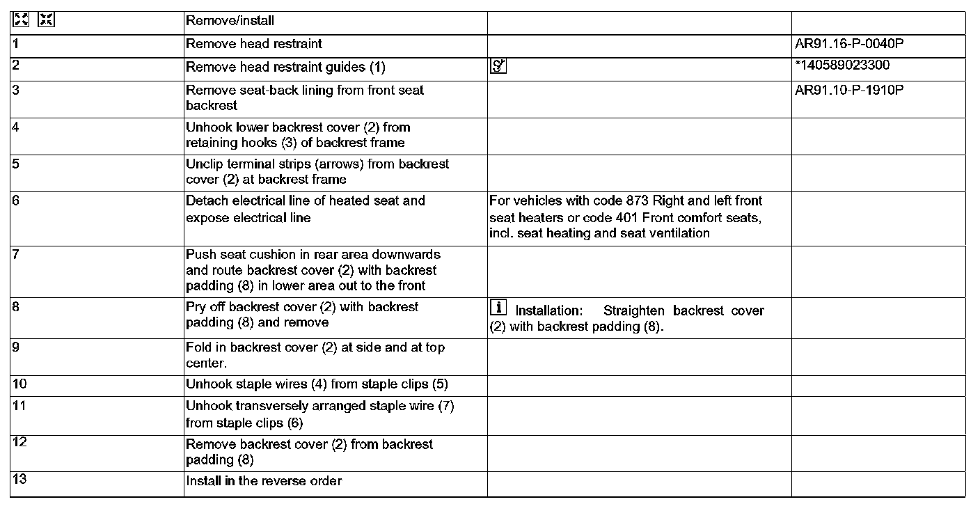 AR91.18-P-1820PC Remove Front Seat Backrest Cover