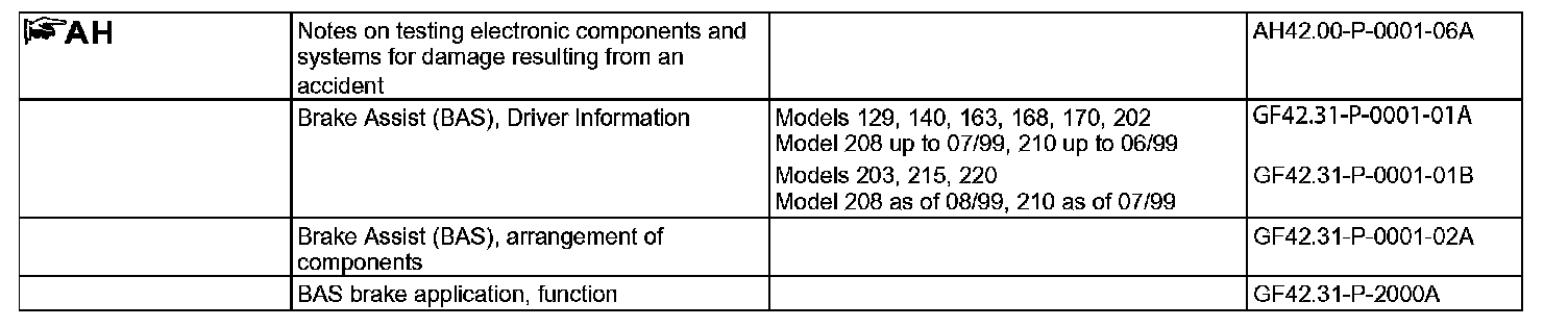 In models 163, 168, 203, 209, 215, 220 the BAS function is integrated in the ESP control unit.