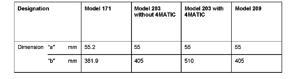 On the model 203 with 4MATIC the amount remaining at the end of the scale must be added to the adjustment reading for the right-side support, as the scale does not extend beyond 50 cm.