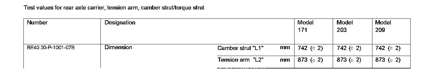 Test Values For Rear Axle Carrier, Tension Arm, Camber Strut/torque Strut: