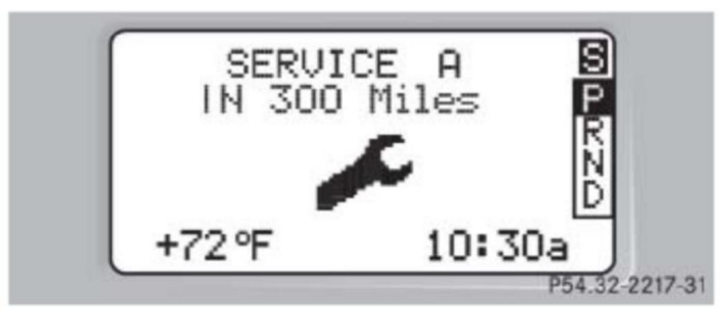 Starting approximately one month before maintenance service is due, one of the following messages will appear in the multifunction display while you are driving or when you switch on the ignition (example service A):
