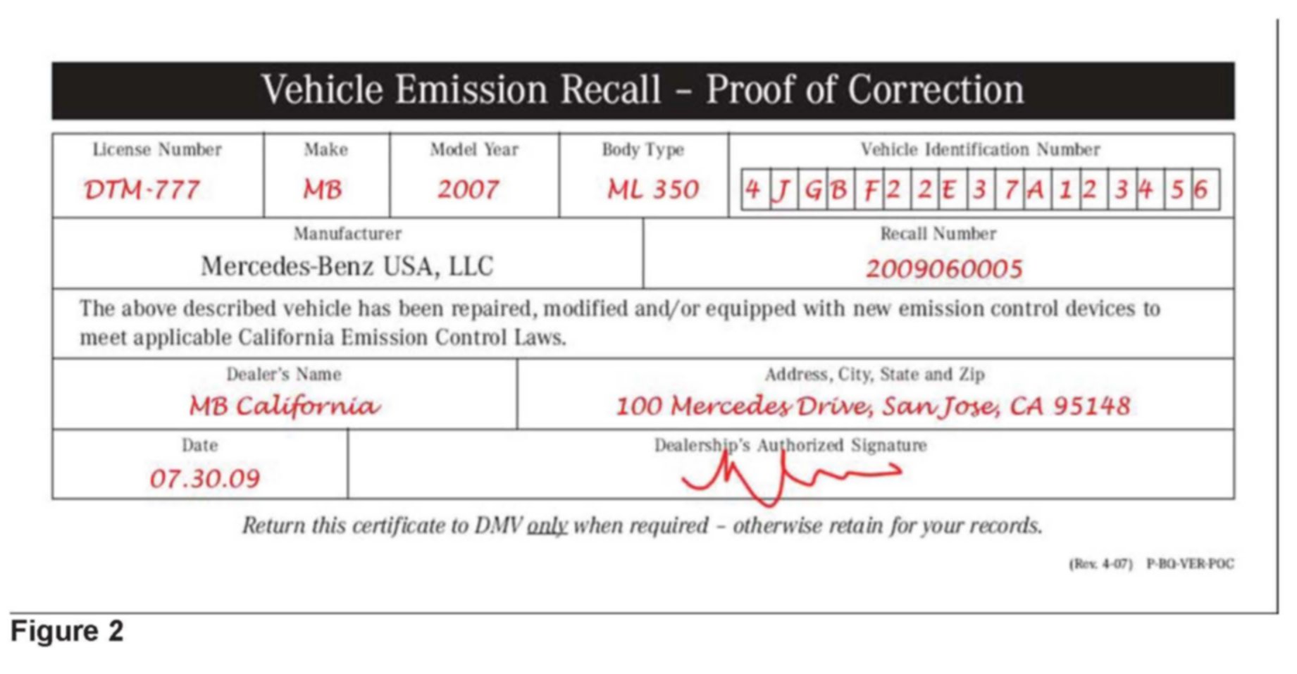 4. California dealers only: Print Proof of Correction form shown above and fill out as shown in Figure 2.