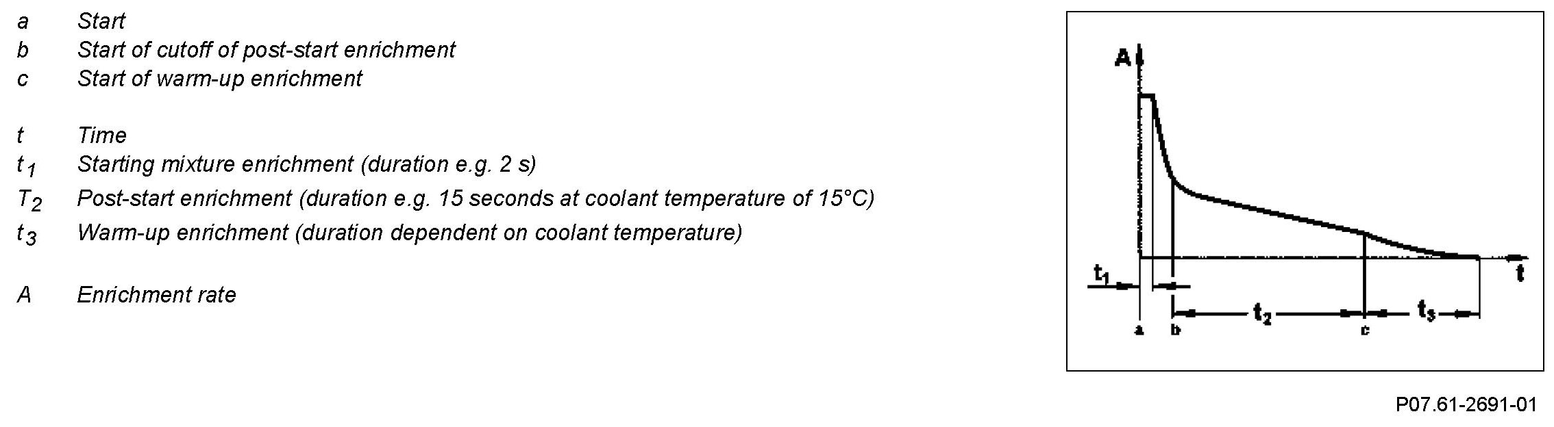 After a cold start the fuel-air mixture is enriched for a short time to ensure that the engine runs smoothly.
