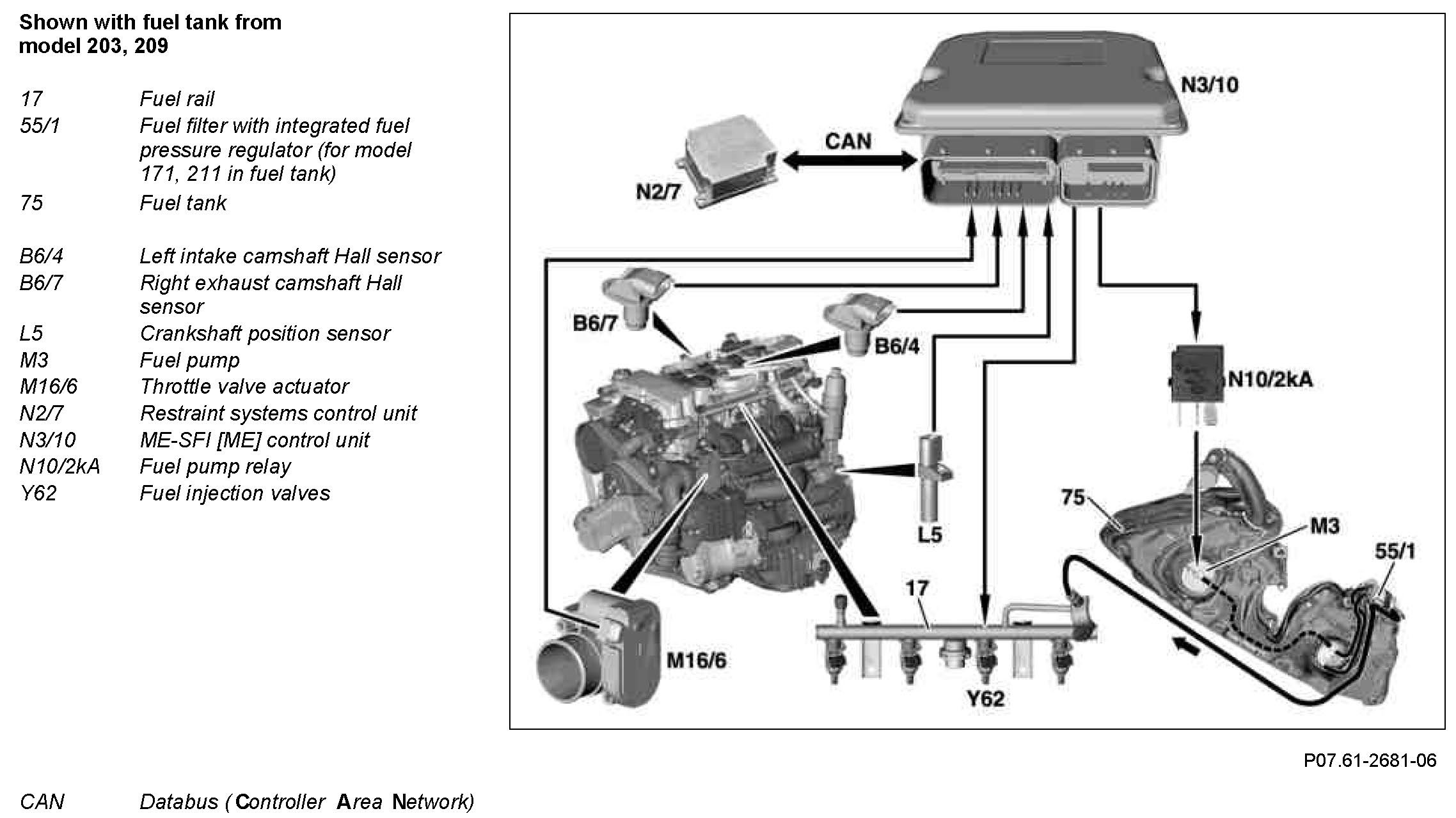 ->The ME control unit switches off the fuel pump and actuates fuel injection valves shortly in order to depressurize the fuel system.