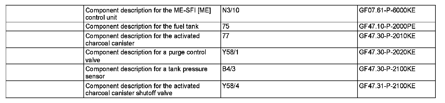 The function of the purge control valve is checked at the same time by the activation. If the closed switchover valve jams, the major leak fault is stored.