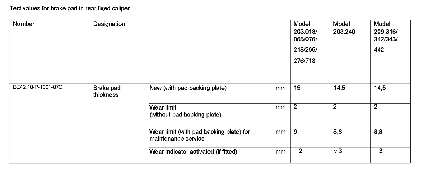 BE42.10-P-1000-07C Test Values For Brake Pad In Rear Fixed Caliper