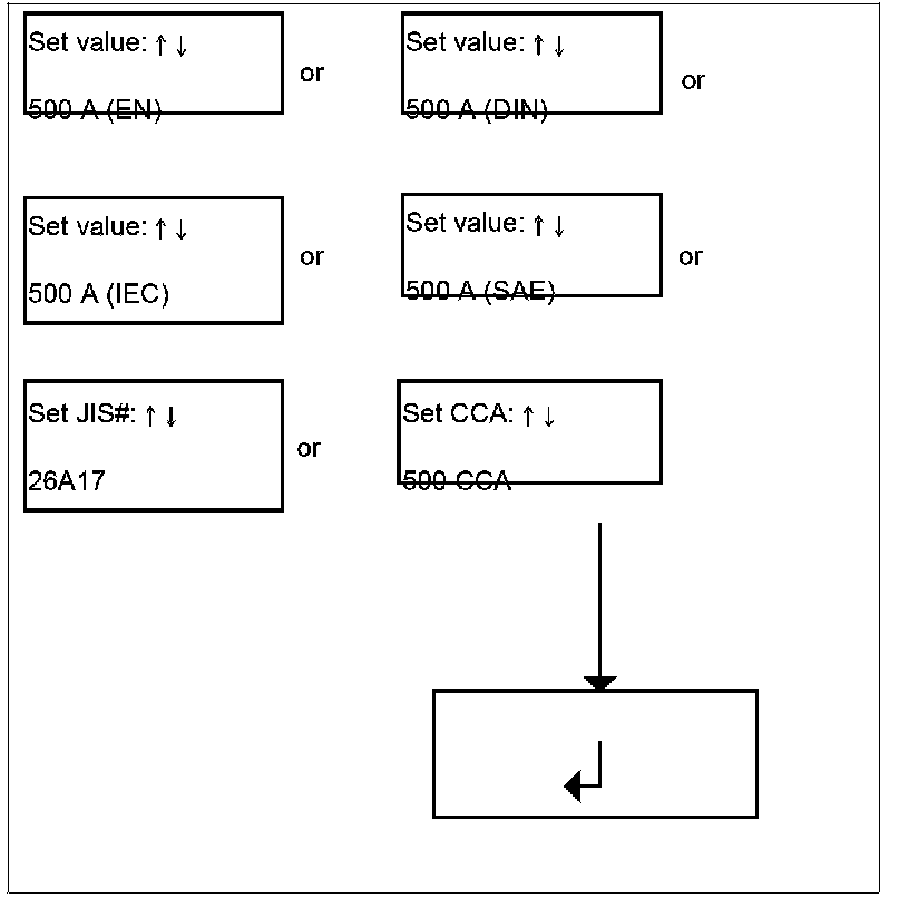5. Follow the menu selection and select the test standard for the cold cranking amps.