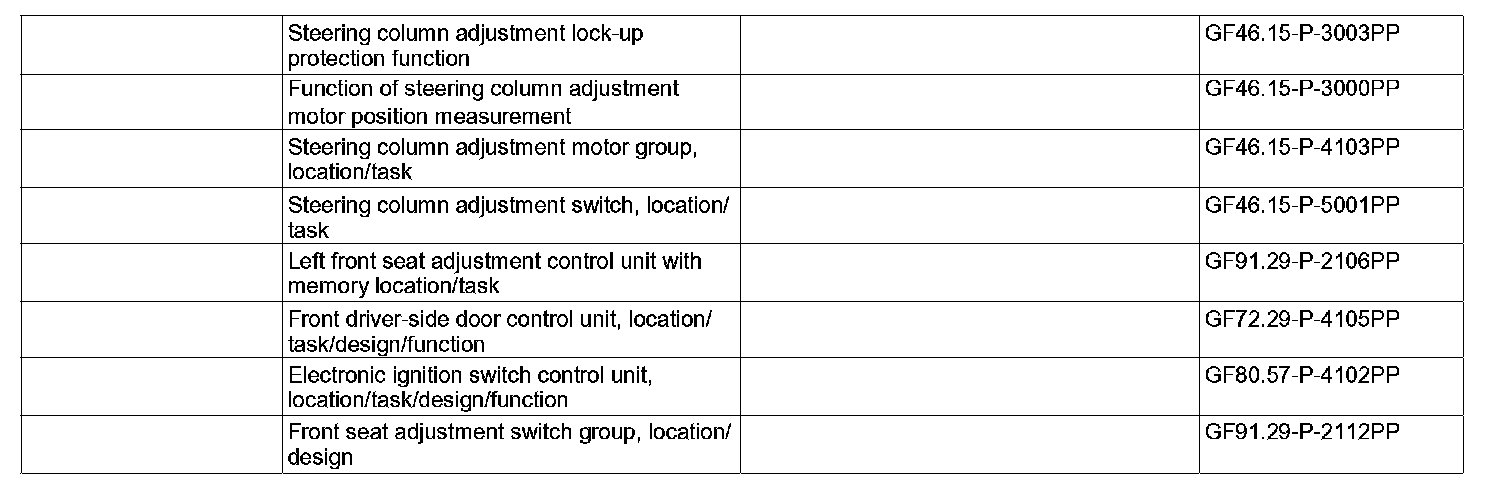Via the memory switches 1, 2, 3 (S91/2s14) the steering column can be adjusted to a position previously stored in the driver-side front seat adjustment control unit with memory (N32/1).
